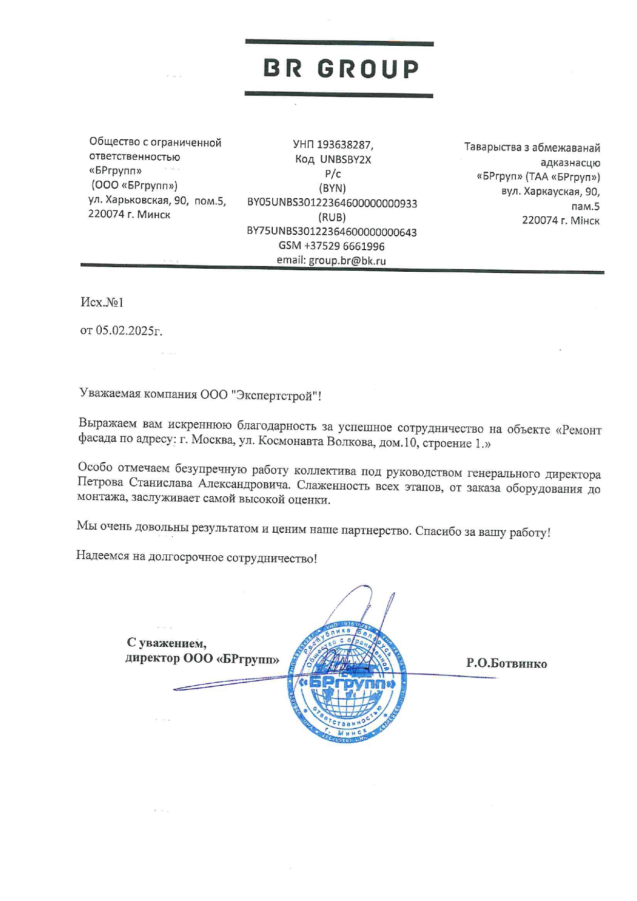 Директор ООО "БРгрупп" Ботвинко Р. О.—5 февраля 2025