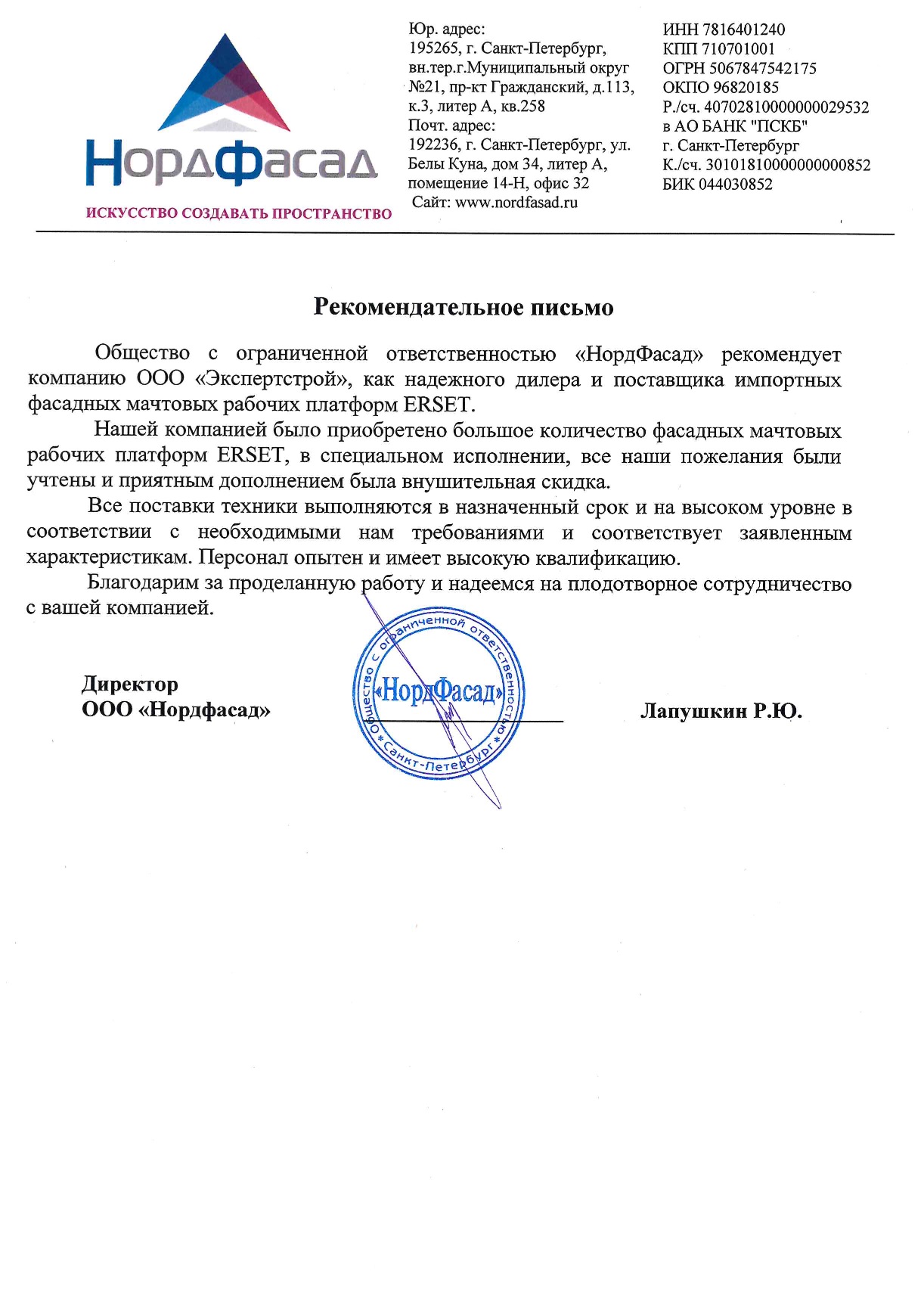 Директор ООО "НордФасад" Лапушкин Р.Ю.